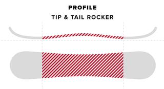 A rocker, also known as a reverse-camber board, is a camber turned upside down. Ideal for both beginner and advanced riders, the rise of the tip and tail away from the snow results in easier float in deeper powder. A rocker will also give a looser, more manoeuvrable feel, freeing up the contact points for less edge catching and more confidence.