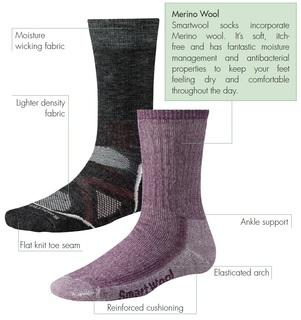 Some socks, like the Smartwool PHD series, compress the muscles to increase support and blood flow by flushing out cramp-causing toxins and aiding recovery, helping you walk further for longer.