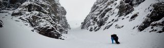 Try and see whether the end of your chosen route is corniced. If it is, check to see if you can exit without having to burrow through or attempt to climb over it. If there is no escape route, do another route. Never underestimate the possibility or risk of cornice collapse. The wise old climber walks away and lives to climb another day!