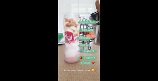 Charlie’s post-run afternoon snack was an energy-packed smoothie consisting of peanut butter, banana, strawberries, oats, Greek yoghurt and strawberry yoghurt.