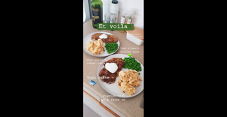 Dinner was an impressive looking homemade meal of courgette tuna cakes, peas, paprika skin-on mash and lemon and dill yoghurt sauce. According to Charlie they are her “absolute favourite lockdown find for a high protein, super nutritious (and very easy) dinner”.